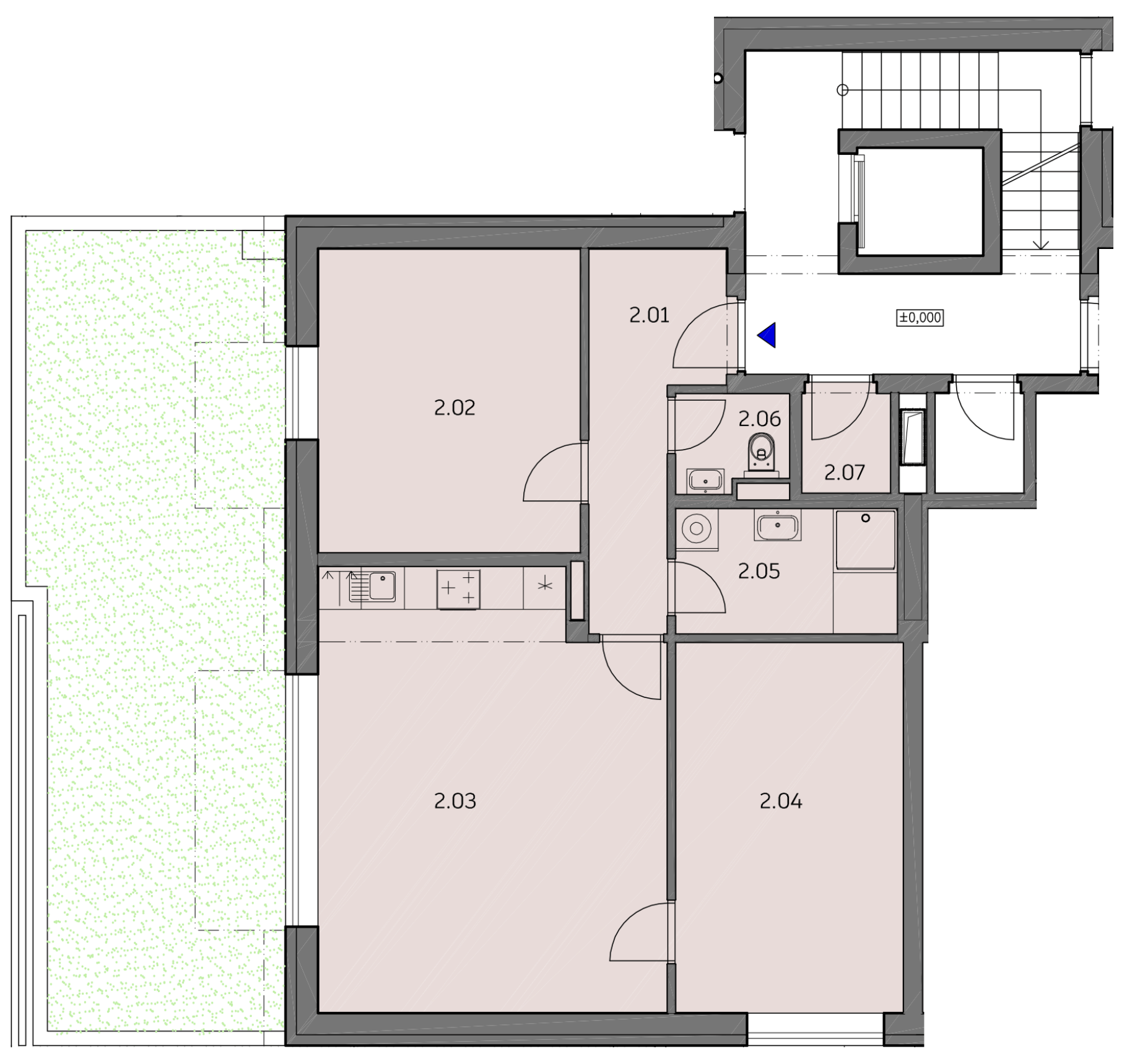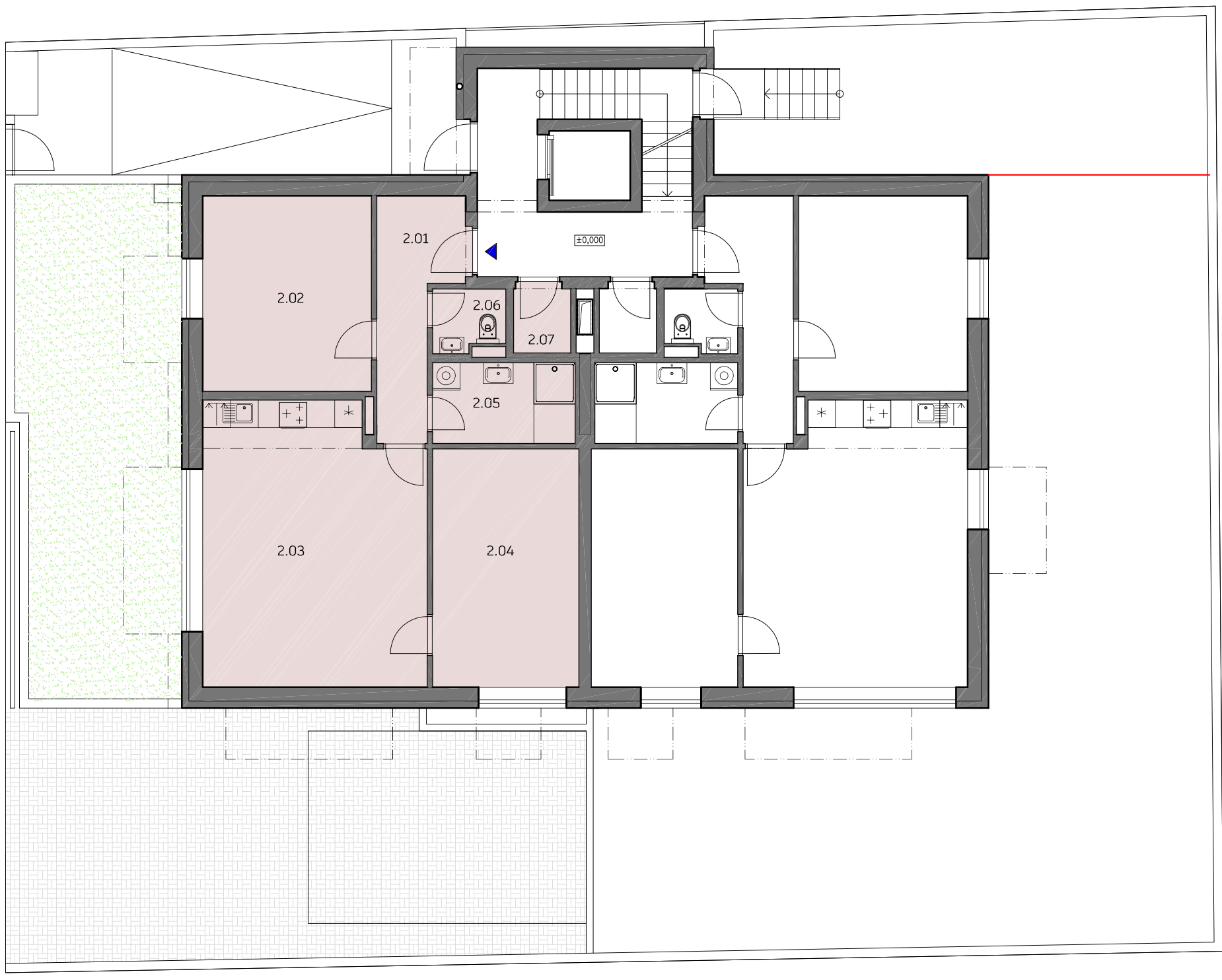 | Byt 2 | 3+kk | 81,1 m2 | 38 m² | – | – | Ano | 2× | Přízemí | Volný | na dotaz |
